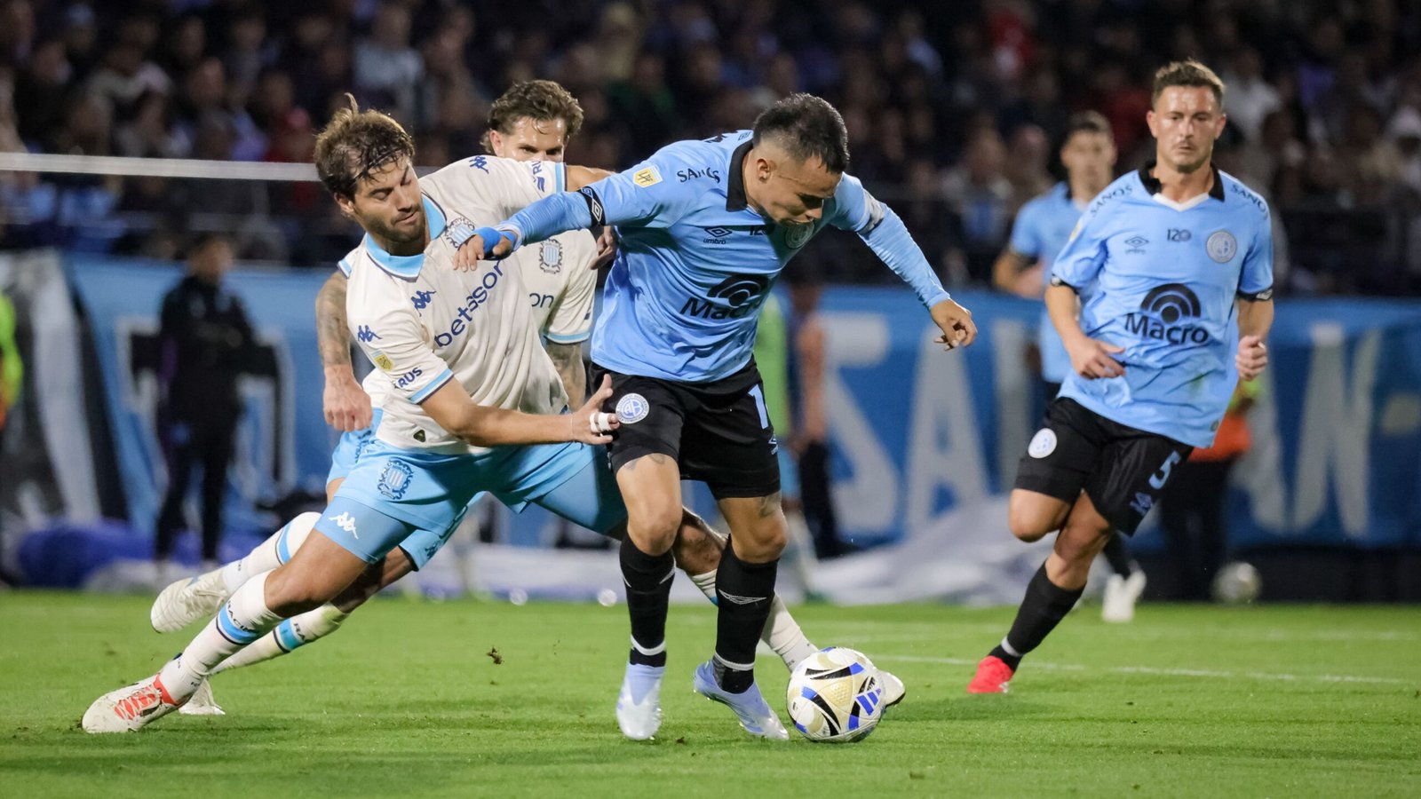 El partido comenzó con 20 minutos de intensidad física y roce. Belgrano metiendo presión a un Racing que se cargó de faltas y en los primeros diez, soportó dos amarillas: una para Adrián Martínez y la otra para Gabriel Rojas.